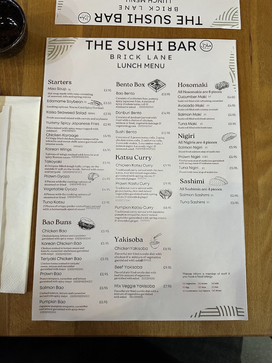 The ambiance is inviting, making it a perfect spot to enjoy a meal. For an unforgettable sushi experience, The Sushi Bar Brick Lane is a must-visit.